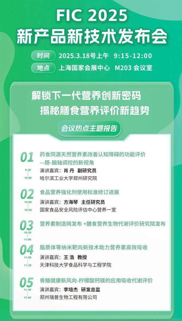 同时,郑州Z6集团还将在3月18日上午9:15-12:00,M203会议室举行新产品新技术发布会,与您共同解锁下一代营养创新密码,揭秘膳食营养评价新趋势!届时我们将邀请多位行业专家从“创新技术,行业法规,生物代谢评价,创新成果”等多维度共同探讨营养健康产业的热点话题,展示营养产业最新研究成果和前沿趋势,促进产学研用融合和成果转化应用,持续为品牌研发提供创新思路,为人类饮食健康事业助力,期待您的参与!