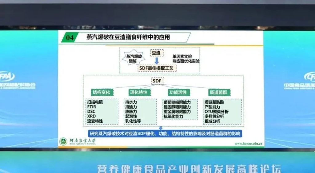 在报告中,宋莲军教授对蒸汽爆破技术的概念、原理、影响因素等做了相关概述,并对蒸汽爆破技术在食品加工副产物、膳食纤维、豆渣膳食纤维中的应用情况,及处理后对产物理化性质的改变进行了说明。