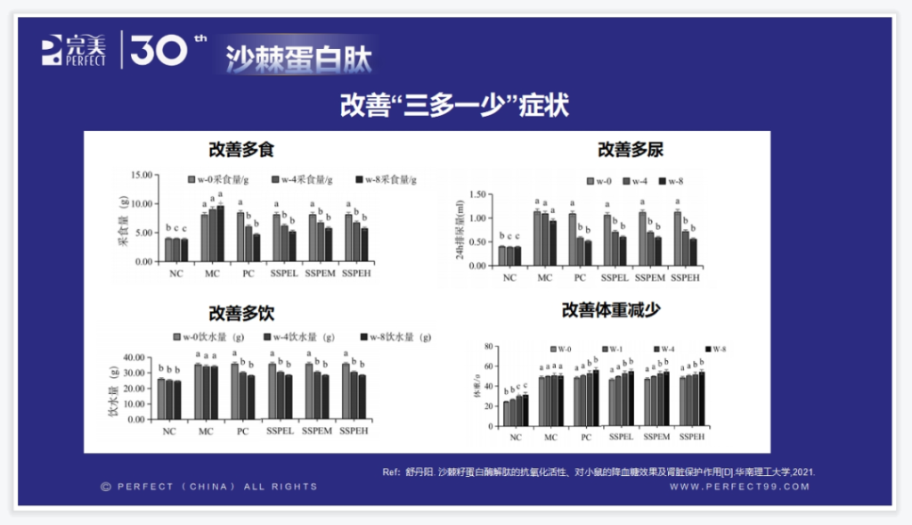 通过对沙棘蛋白的酶抑制活性及降血糖的功能进行探究,结果表明,沙棘蛋白可以明显降低空腹血糖、并改善“多食、多尿、多饮”及体重减少的症状。
